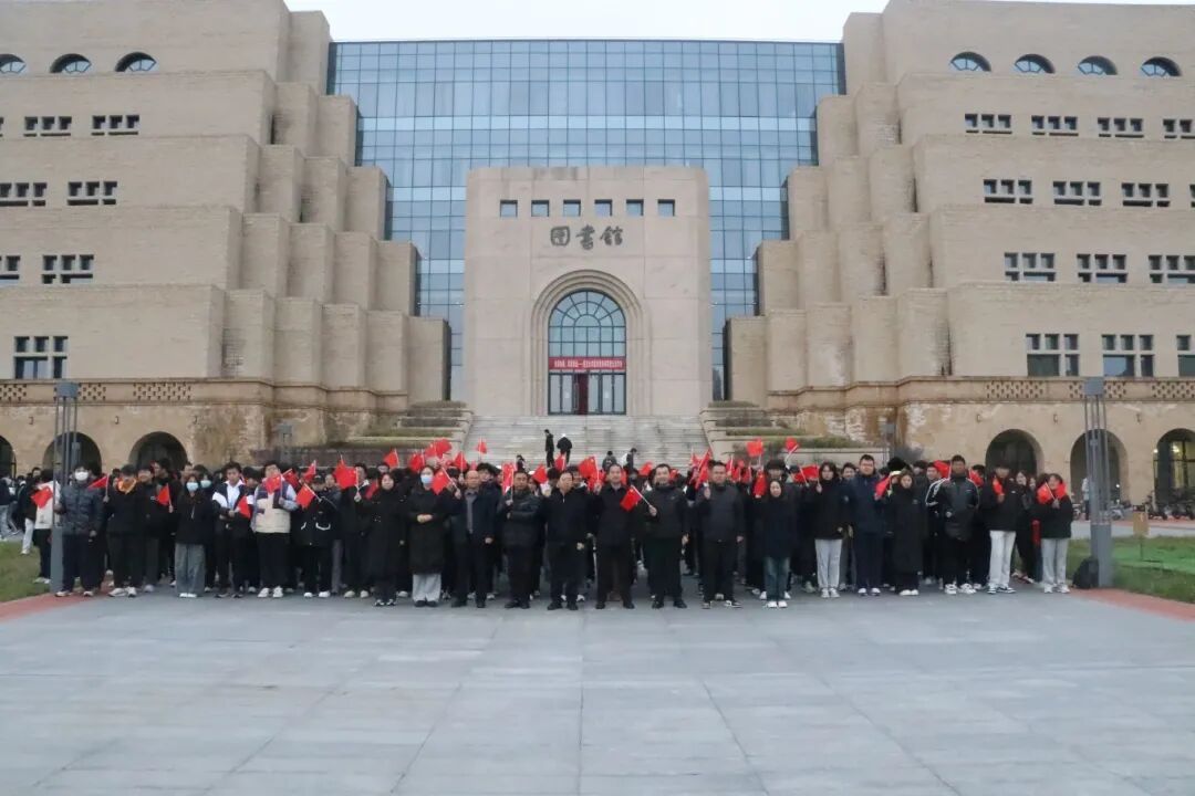 为深入学习贯彻党的二十届四中全会精神,弘扬爱国主义精神,激励青年学子勇担时代使命,11月10日早7:00,我院于图书馆广场前举行“学习全会精神,凝聚奋进力量”