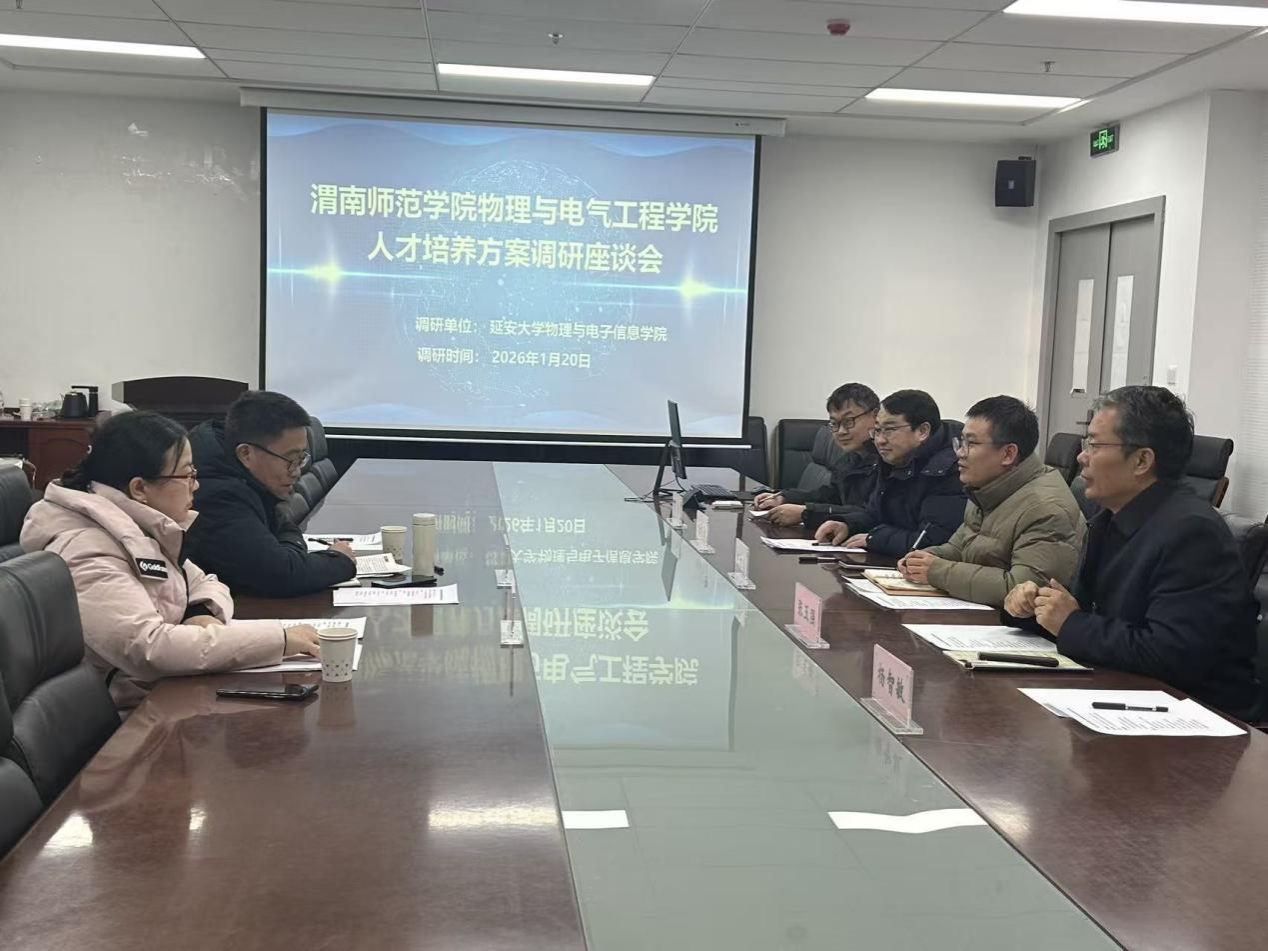 为深化人才培养模式改革,优化人才培养方案体系,进一步加强校际间教育教学经验交流,1月20日下午,渭南师范学院物理与电气工程学院副院长郭宝会教授、系主任冯洋一行莅临我院,在信息大厦A607会议室召开人才培养方案调研座谈会。我院副院长何智慧教授、张玉强教授、杨能勋教授、李伟教授及教学秘书杨智敏教授出席座谈会,双方围绕人才培养核心议题展开深入交流。