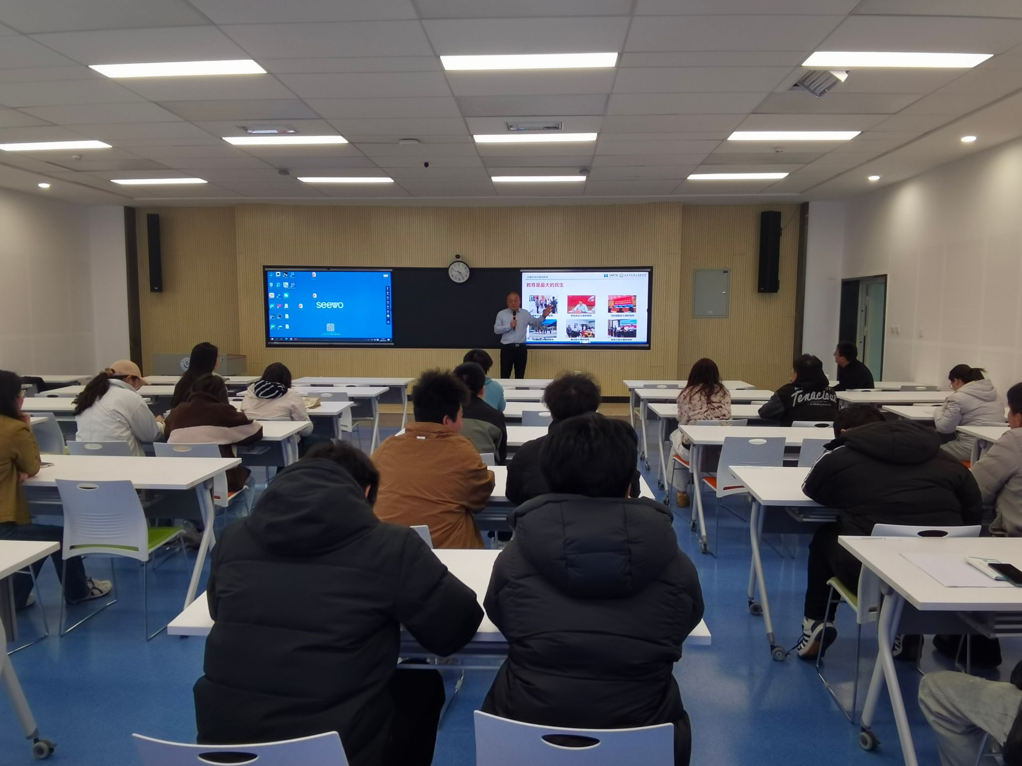 在互动交流环节,同学们围绕招聘流程、编制待遇、入职培训、教学发展、生活保障等问题积极提问,校方负责人逐一耐心解答,现场氛围热烈。通过面对面交流,大家进一步明确了求职方向,增强了投身基础教育一线的信心。