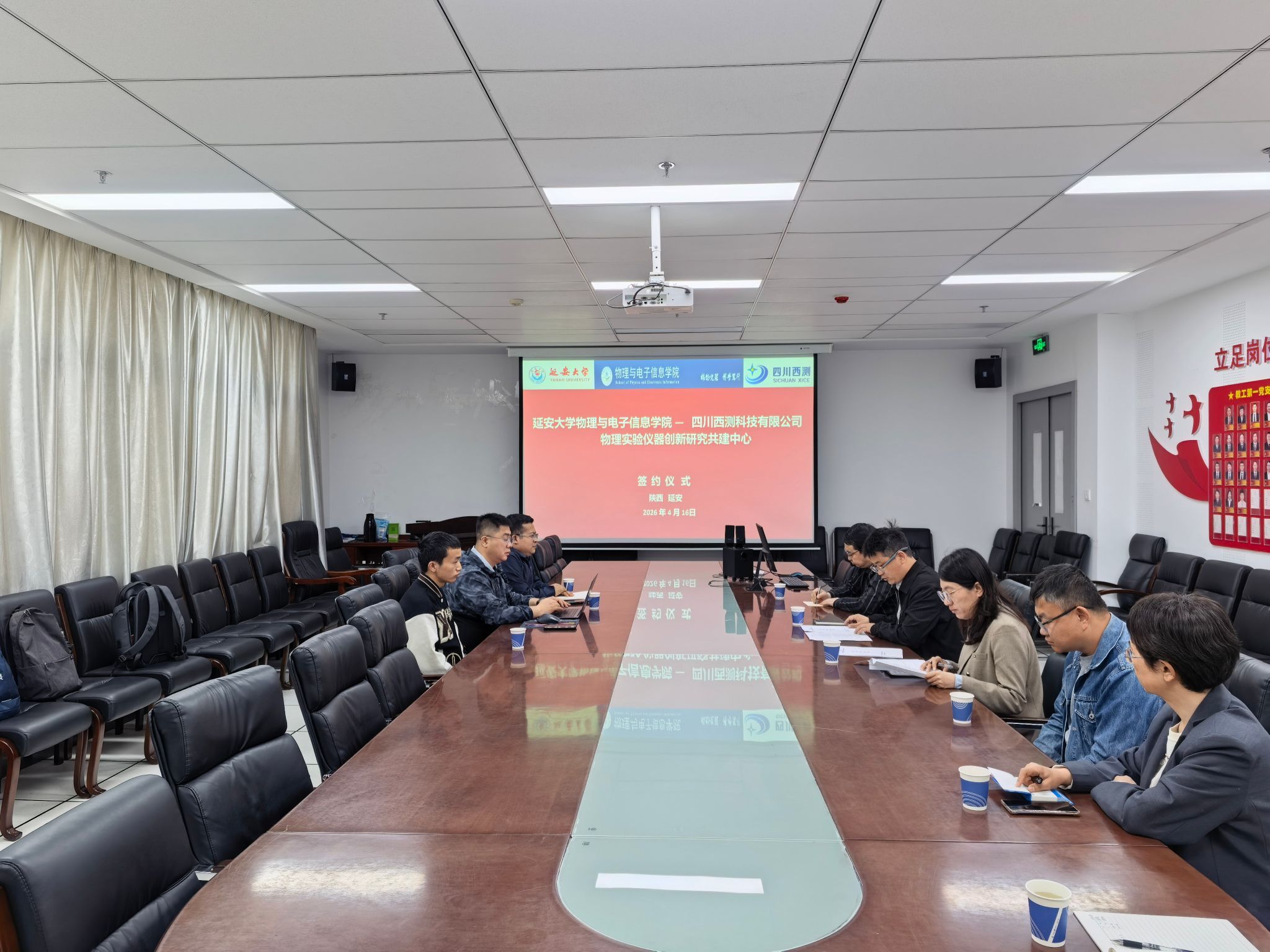4月16日上午,我院与四川西测科技有限公司在信息大厦A607会议室举行物理实验仪器创新研究共建中心签约暨揭牌仪式。四川西测科技有限公司总经理赵小清、工程师杨磊,学院副院长何智慧、赵晔、物理学专业负责人杨能勋、系主任李伟及教师代表曹冬梅等人参加了仪式。仪式由副院长何智慧主持。