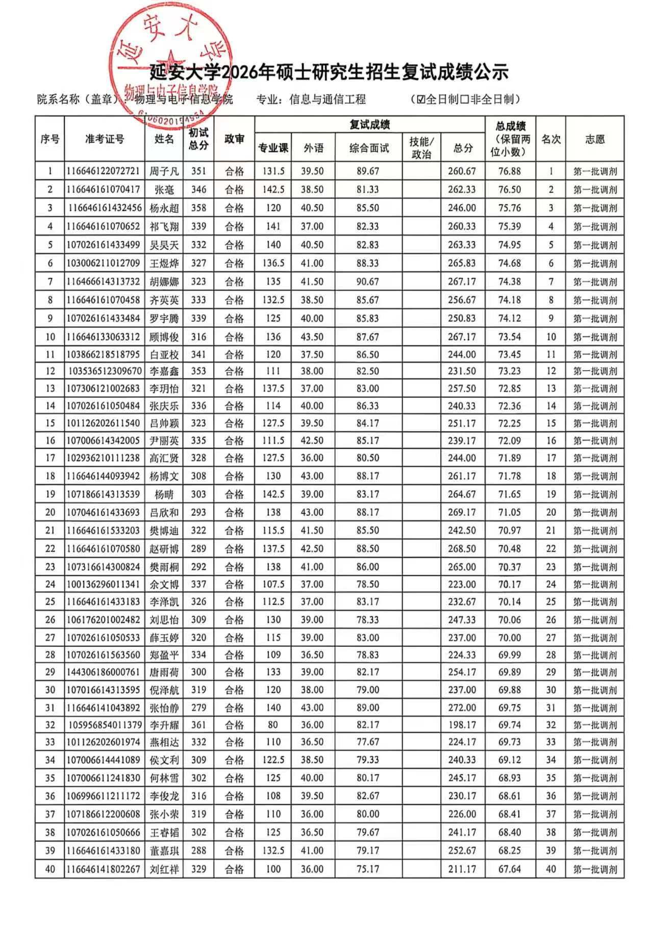 依照我院2026年硕士研究生复试录取工作实施方案和调剂复试工作安排,安排在2026年4月9日的信息与通信工程专业调剂考生复试工作已经圆满结束,现将具体的复试成绩进行公示,公示时间为十个工作日。